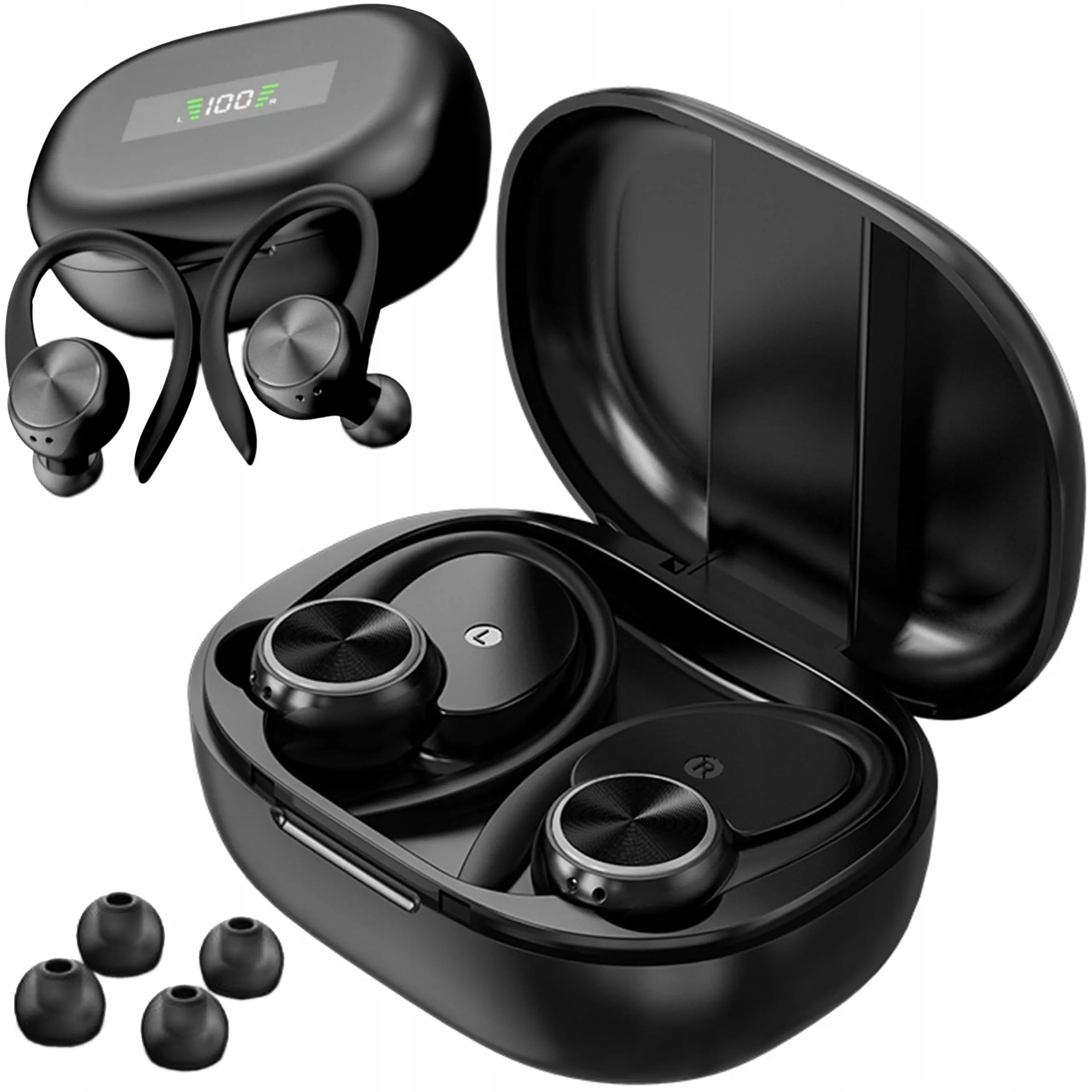 Słuchawki bezprzewodowe douszne bluetooth pałąk sportowe mikrofon powerbank R200