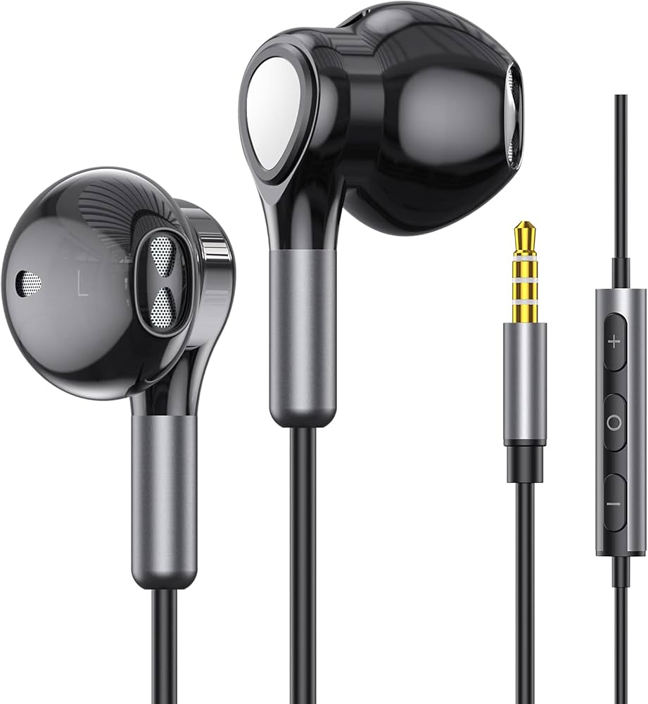 Słuchawki przewodowe, słuchawki douszne przewodowe, słuchawki douszne, gniazdo 3,5 mm, przewodowe słuchawki z mikrofonem i regulacją głośności dla iPhone’a, Samsunga, Androida, iPada, MP3 (Czarny) :